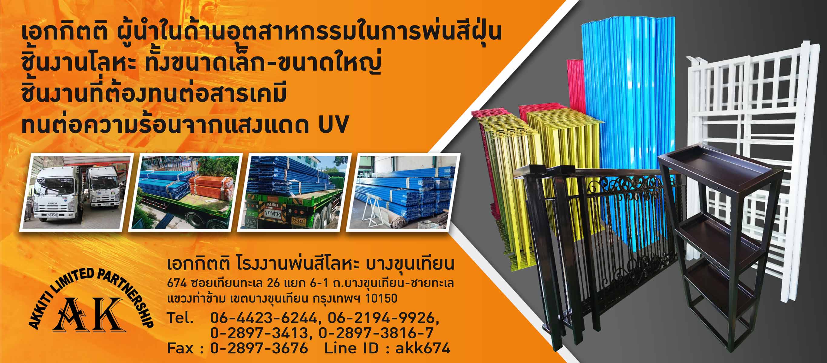 โรงงานพ่นสีฝุ่น เอกกิตติ รับงานพ่นสีฝุ่นปริมาณมากจากโรงงานอุตสาหกรรมผลิตชิ้นงานเหล็กและอลูมิเนียม และรับงานพ่นสีอบให้กับร้านประตูเหล็กดัด ประตูรั้ว แผงรั้ว ราวกันตก ราวบันได สามารถชิ้นงานขนาดใหญ่ได้สูงสุดถึง 200x700x200 มม. และรับงานพ่นสีฝุ่นท่อหรือแท่งที่มีความยาวสูงสุดถึง 12 เมตร บริการรับและส่งงานพ่น